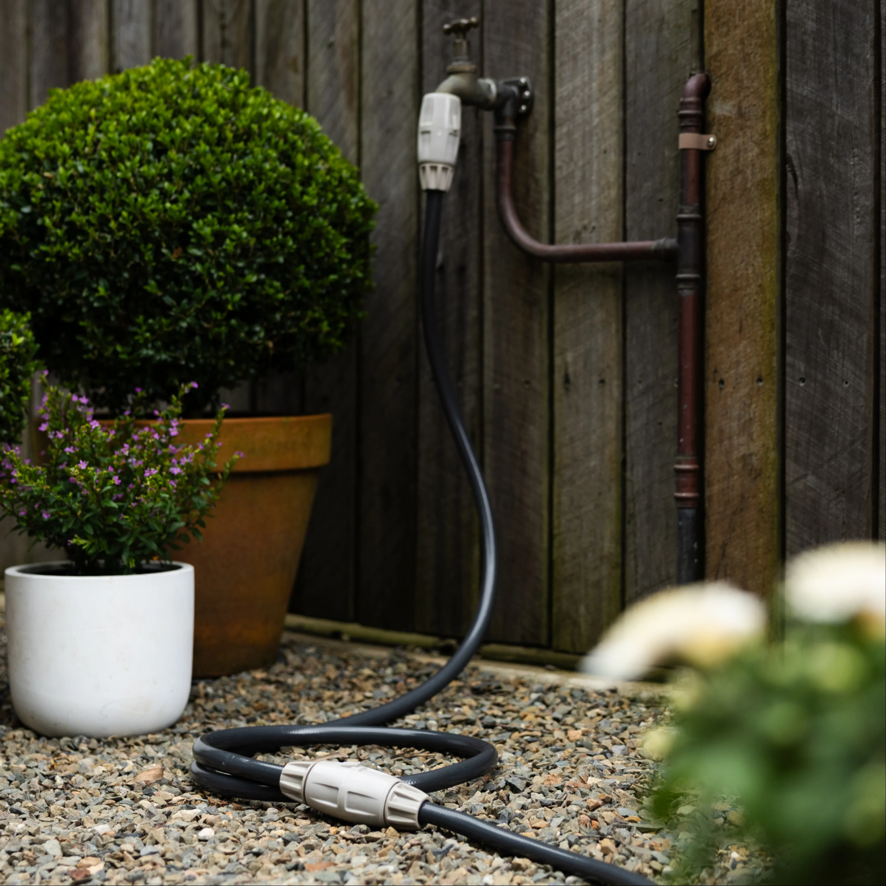 The Charcoal Leader Hose Extension comes in a 1.5m or 5m length with a Hose Connector fitted on either end. Simply connect one end to the Tap Connector and the other end to the Hose Reel Leader Hose.