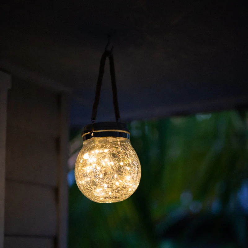 With its unique design, this Crackle Solar Jar Light can illuminate any balcony or entertaining area with its soft, ambient glow. It can also be hung as a beautiful pendant light from a sunny pergola or tree branch.